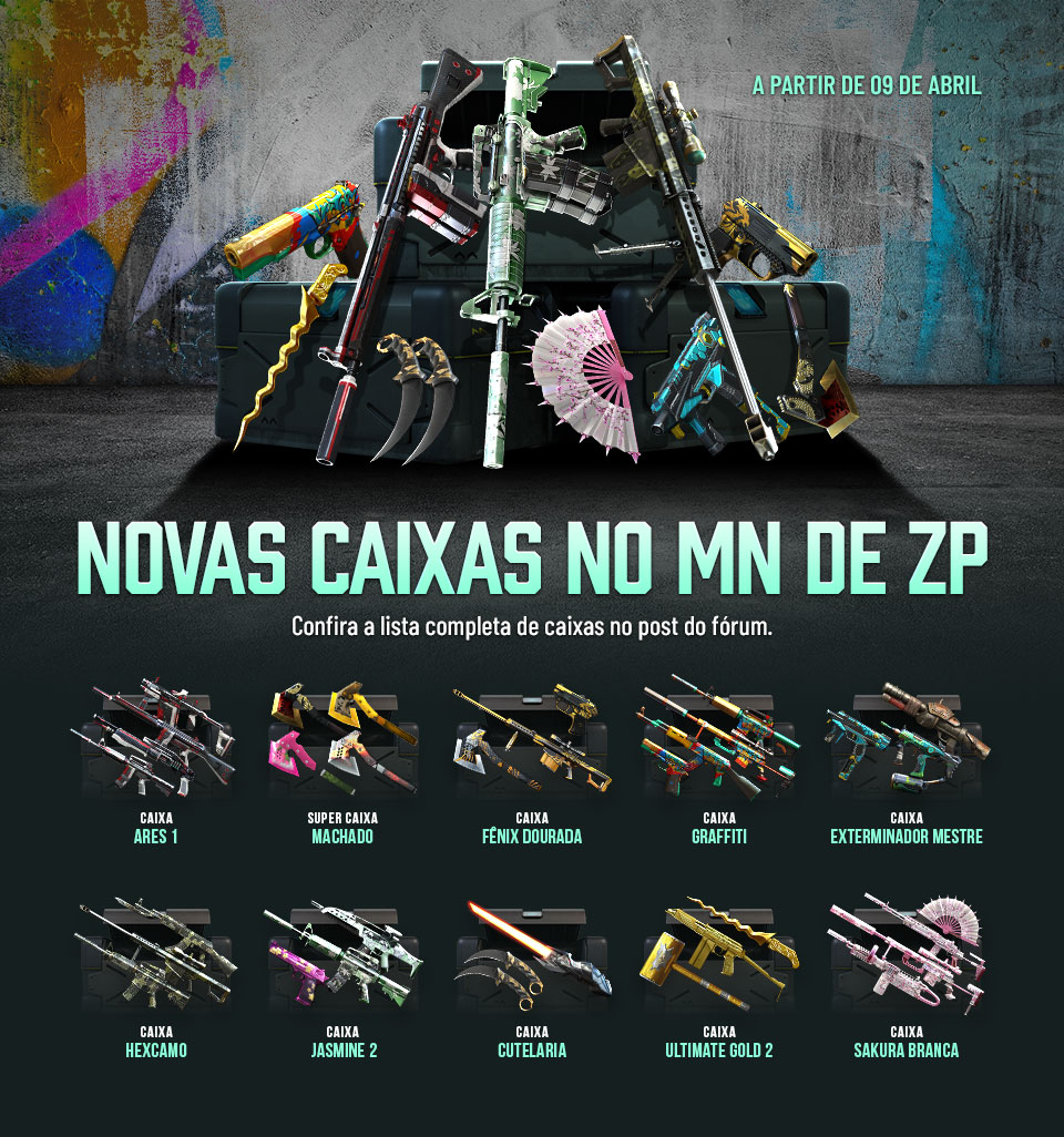 A partir do dia 09 de abril, uma nova seleção de caixas chega ao Mercado Negro, pronta para elevar o nível do seu arsenal e deixar suas partidas ainda mais intensas.