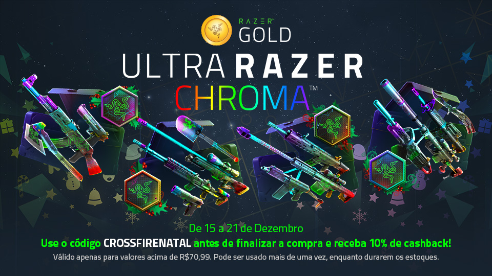 E TEM MAIS! Utilize o código CROSSFIRENATAL e receba 10% de Cashback em TODAS suas compras de no mínimo 70.000 ZP pela Razer Gold Wallet.